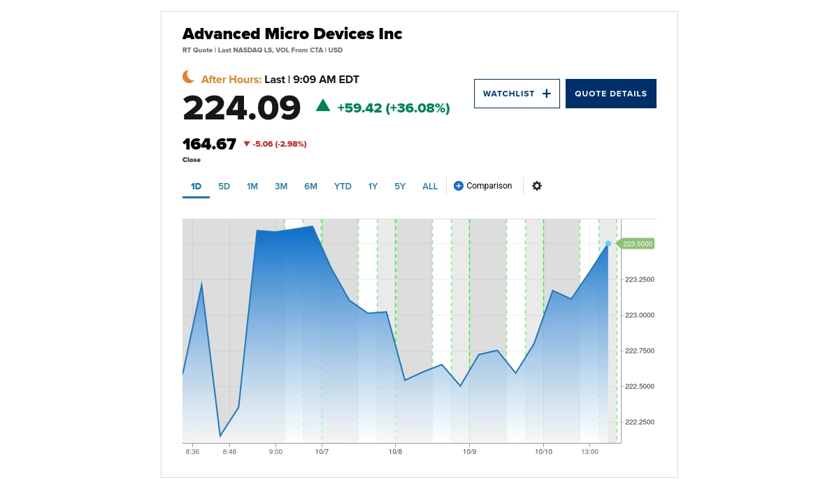 OpenAI y Advanced Micro Devices han alcanzado un acuerdo histórico que podría ver a la compañía de Sam Altman tomar una participación del 10% en el fabricante de chips. Las acciones de AMD se dispararon más del 35% el lunes durante las operaciones previas a la apertura del mercado tras conocerse la noticia.