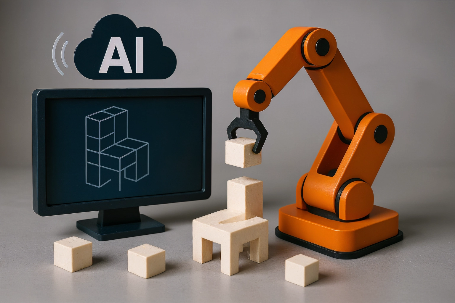 Un innovador sistema combina inteligencia artificial generativa 3D y ensamblaje robótico para materializar objetos a partir de comandos de voz en solo cinco minutos
